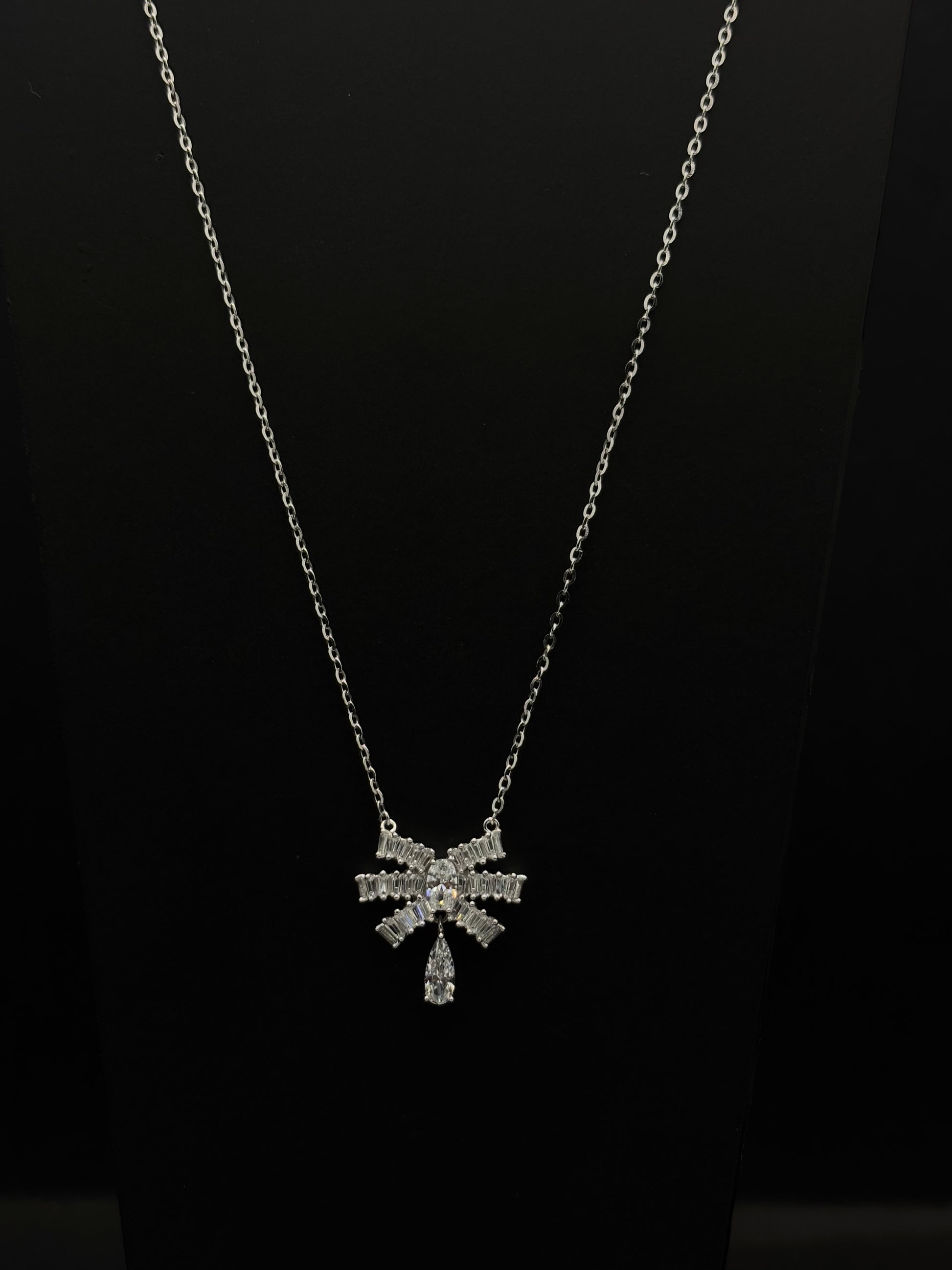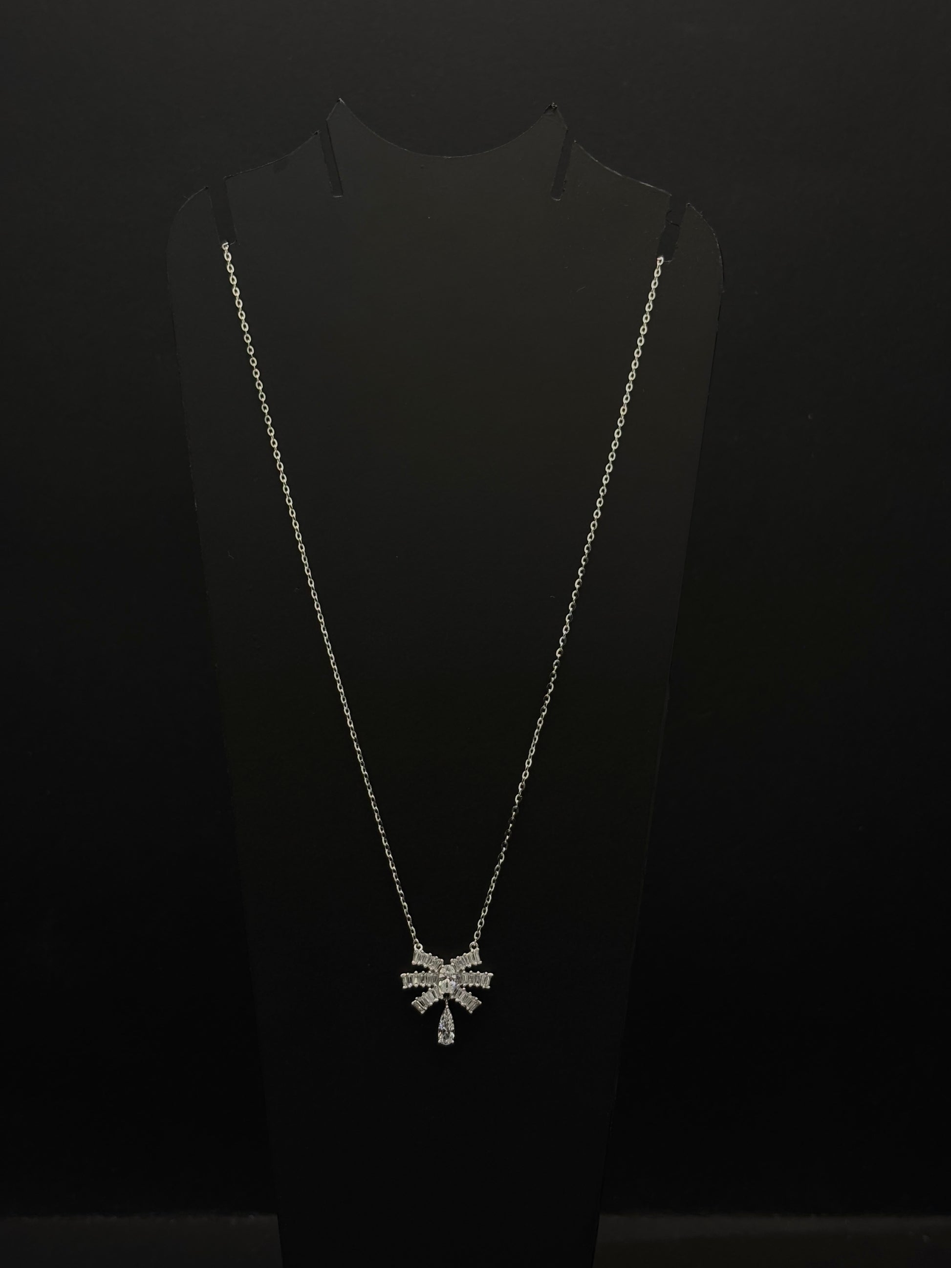 Charming Cubic Zirconia Bow Pendant Necklace #15