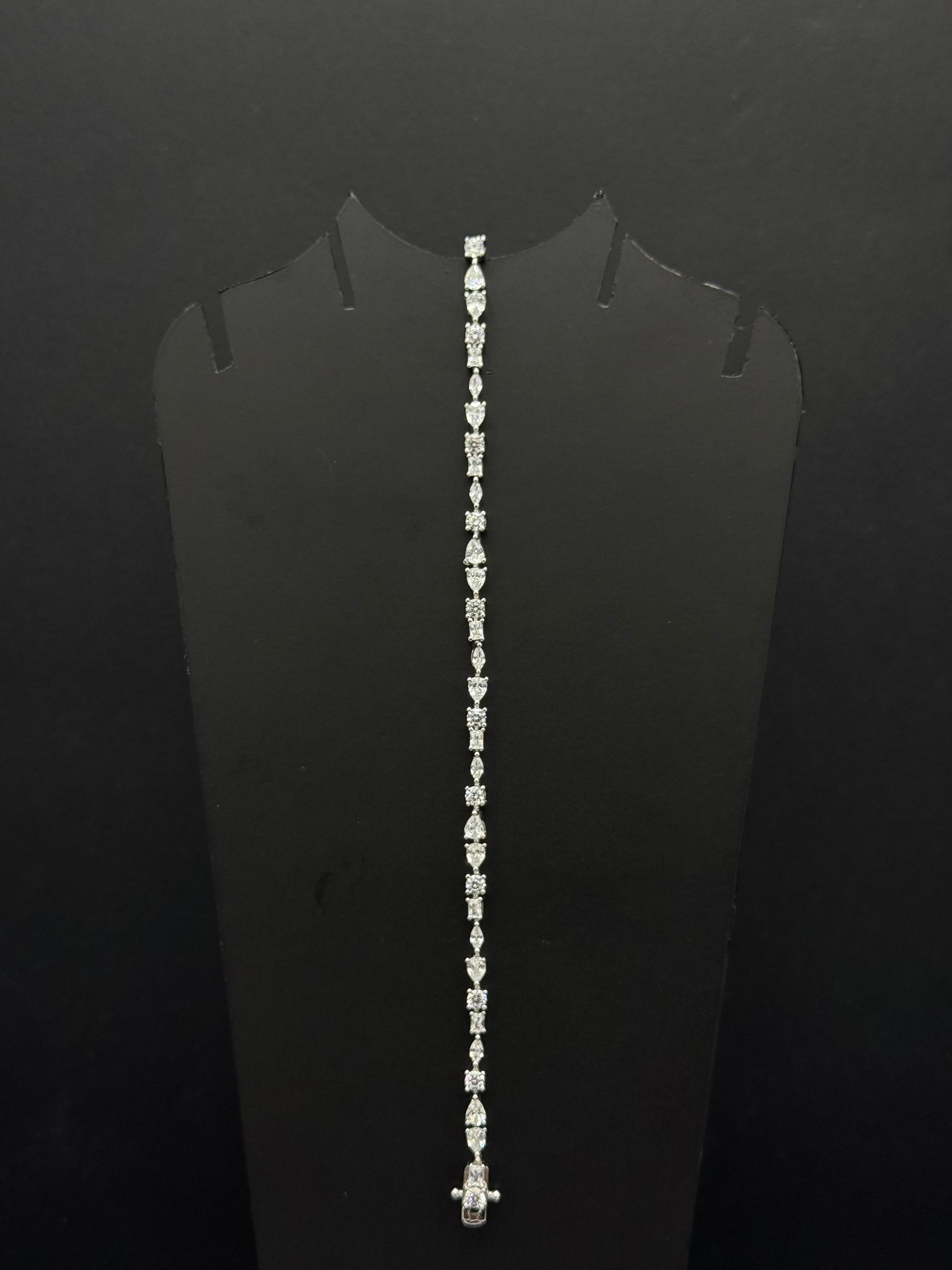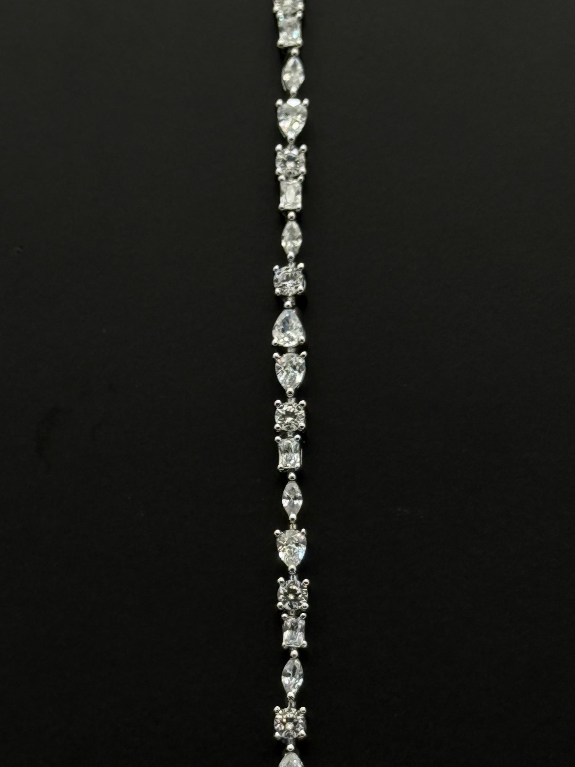 The arrangement of these varied cuts creates a visually rich and dynamic piece, ensuring continuous sparkle and interest from every angle. Each stone appears to be individually set, maximizing light return. This versatile and elegant accessory is perfect for adding a touch of unique glamour to any attire, suitable for both special occasions and elevating everyday style.