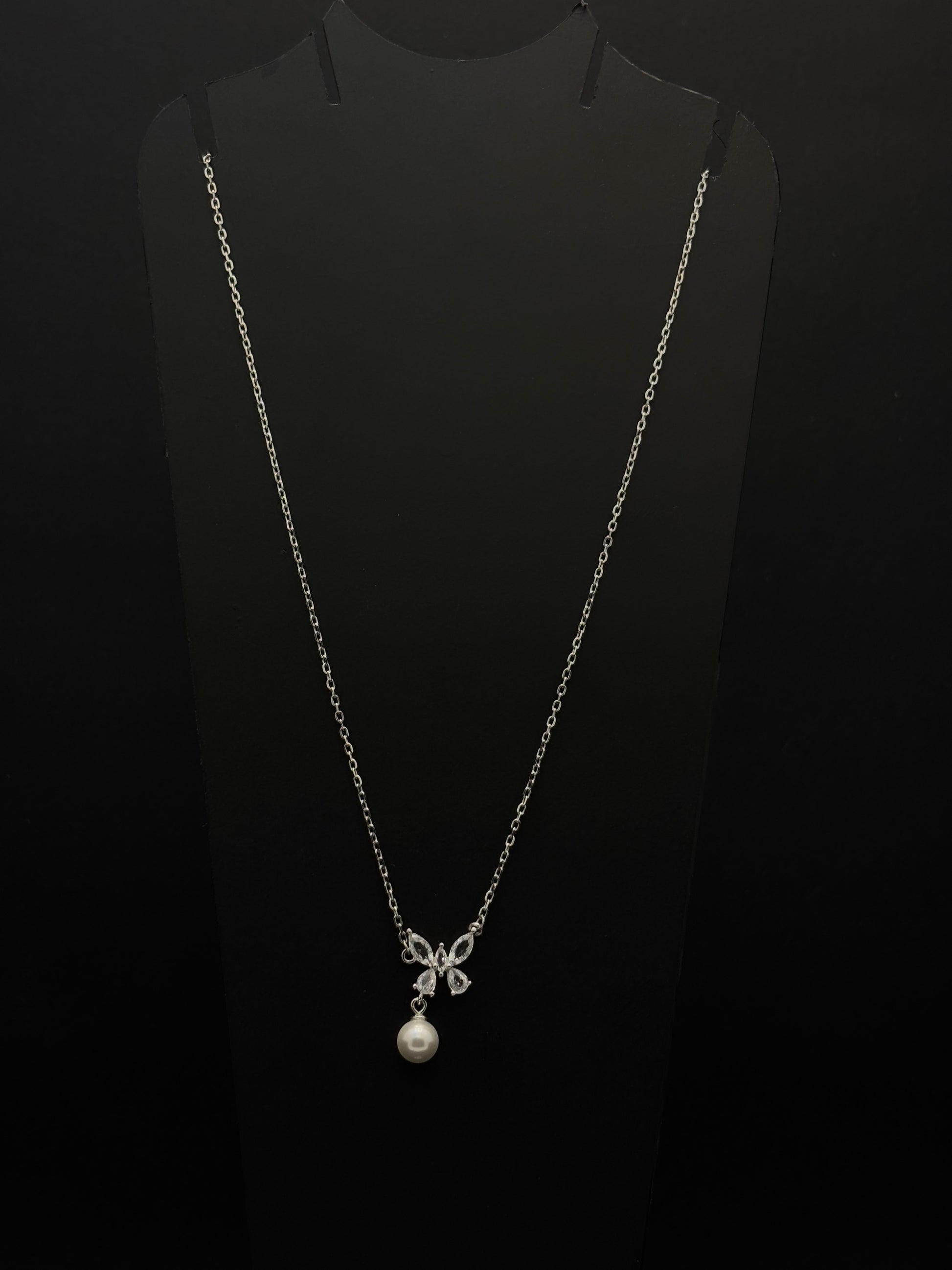 Graceful Butterfly & Pearl Drop Necklace in Silver Tone #47