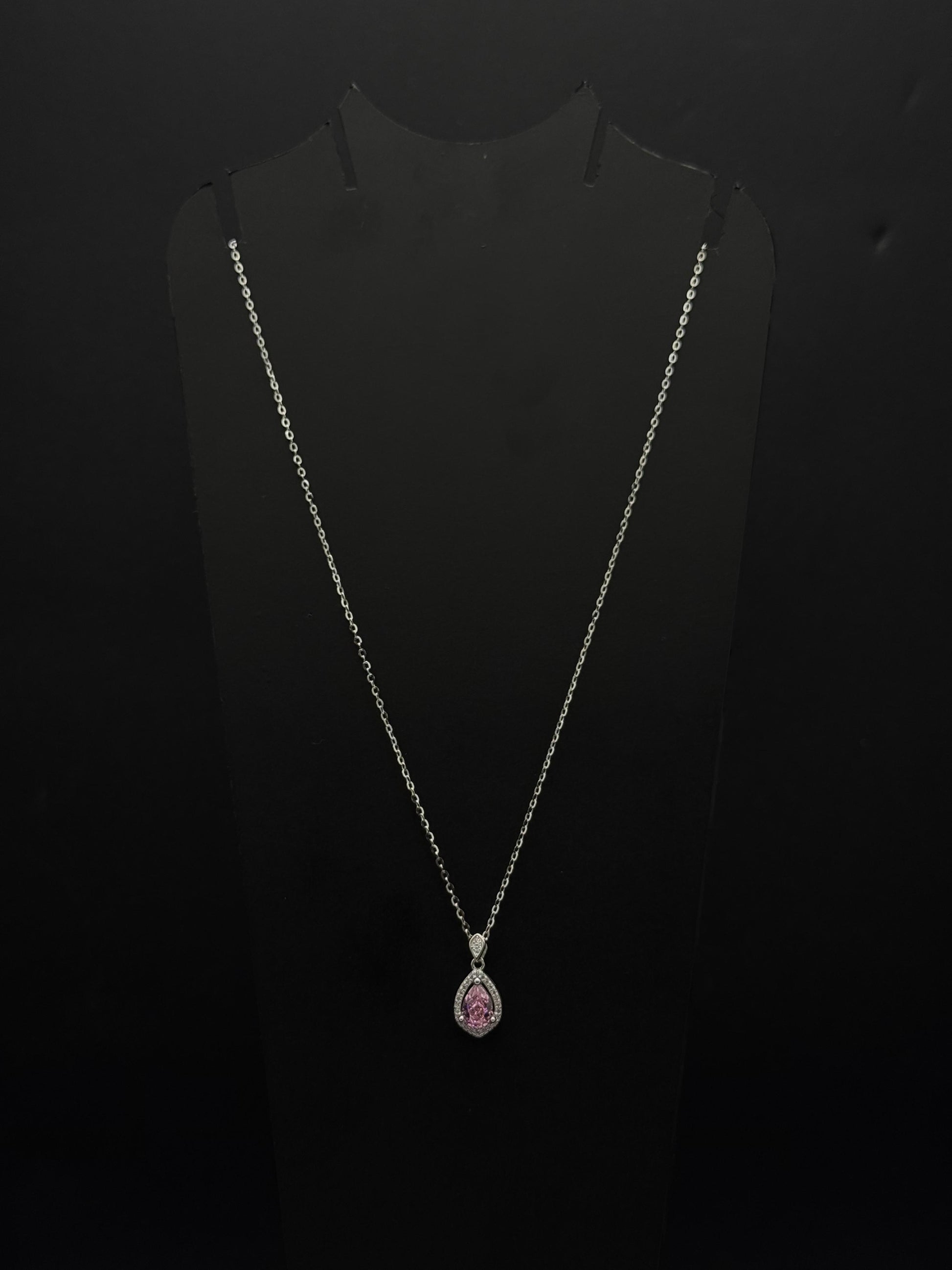The Pink Teardrop Halo Pendant Necklace is a captivating blend of elegance and romance. Featuring a stunning pear-cut pink stone at its center, framed by a delicate halo of shimmering cubic zirconia, this pendant exudes timeless beauty. The teardrop design is further enhanced with a pavé-set bail, adding an extra touch of sparkle. Suspended on a fine silver chain, this necklace is perfect for evening glamour or adding a pop of sophistication to everyday style.