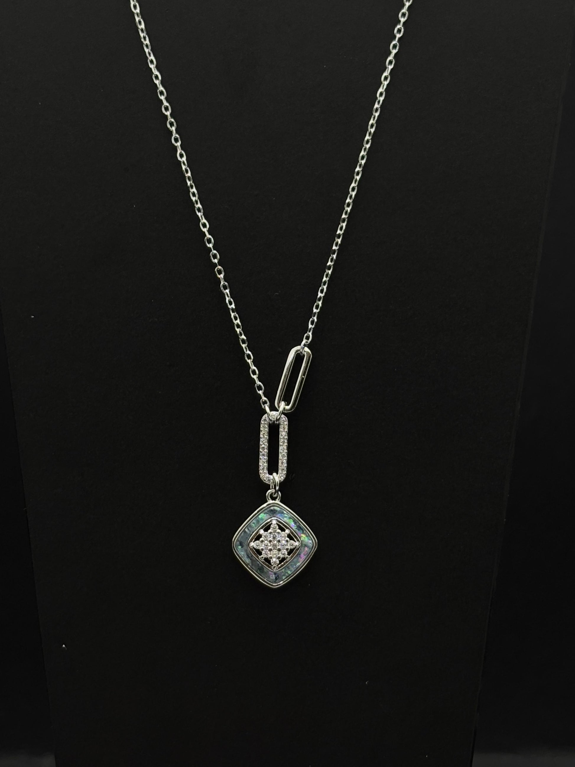 Rhombus Pendant chain with Mother of Pearl and Cubic Zirconia #450