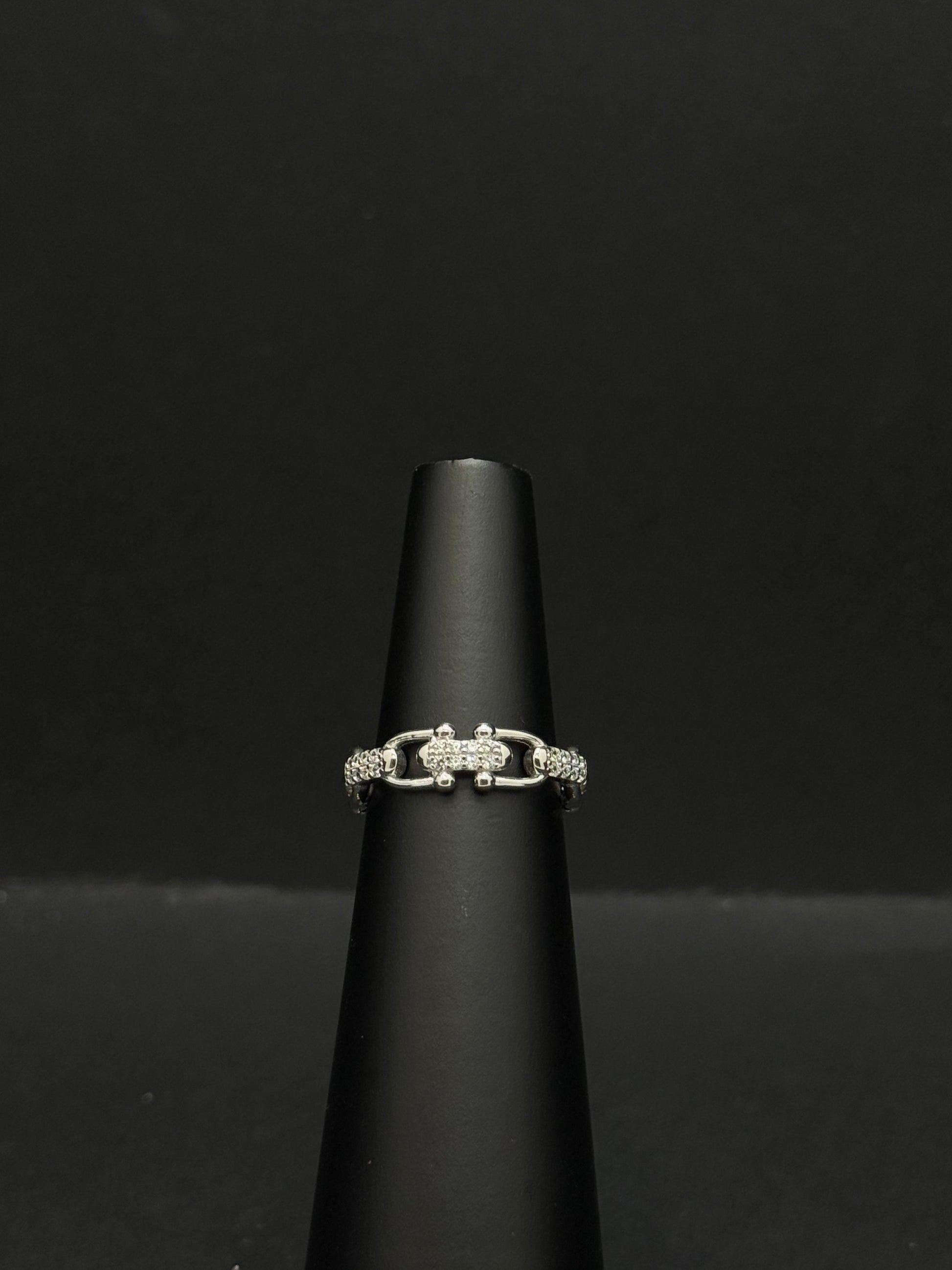 Sterling Silver Link Chain Ring with Diamond Accents #342