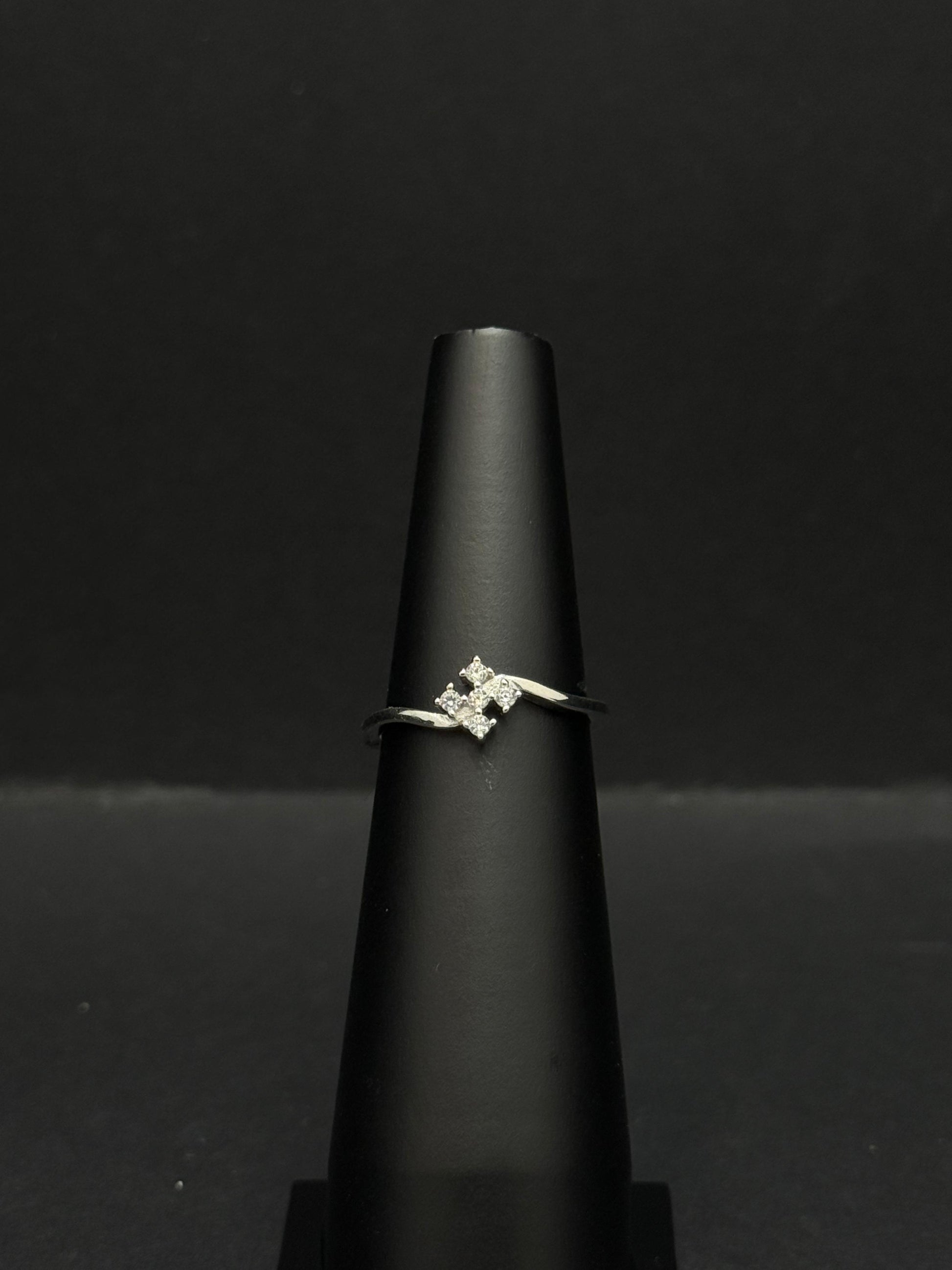 At each end of the band, a brilliant cluster of three round-cut stones is meticulously set, resembling a blooming leaf or a collection of dewdrops catching the light. The stones are expertly placed to maximize their sparkle, ensuring that the ring catches the eye with every subtle movement.