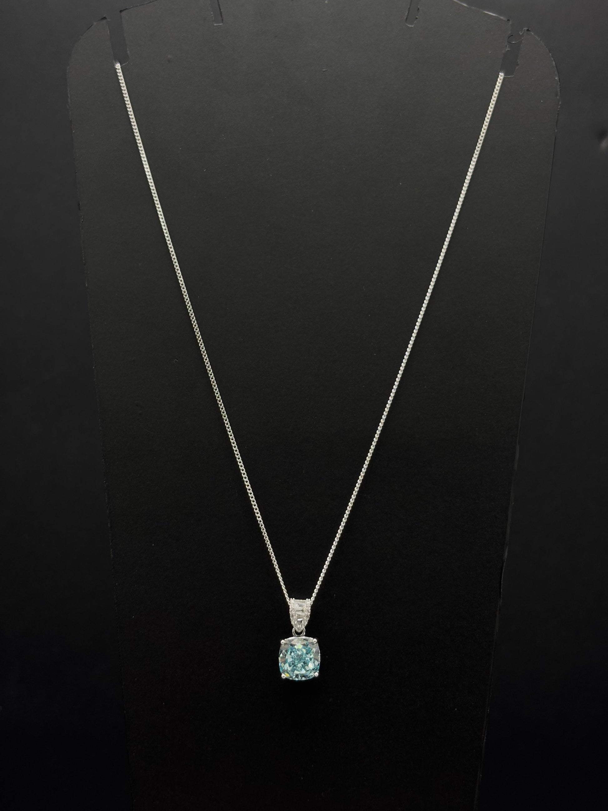 Dive into a sea of exquisite color with The Grand Caribbean Cushion Pendant. This breathtaking necklace features a large, brilliantly faceted cushion-cut blue crystal, reminiscent of tropical waters. It's elegantly suspended from a sophisticated pavé-set crystal bail, with baguette accents, adding another layer of luxurious sparkle. The bold color and timeless design make this piece a captivating statement for any occasion, promising to turn heads.