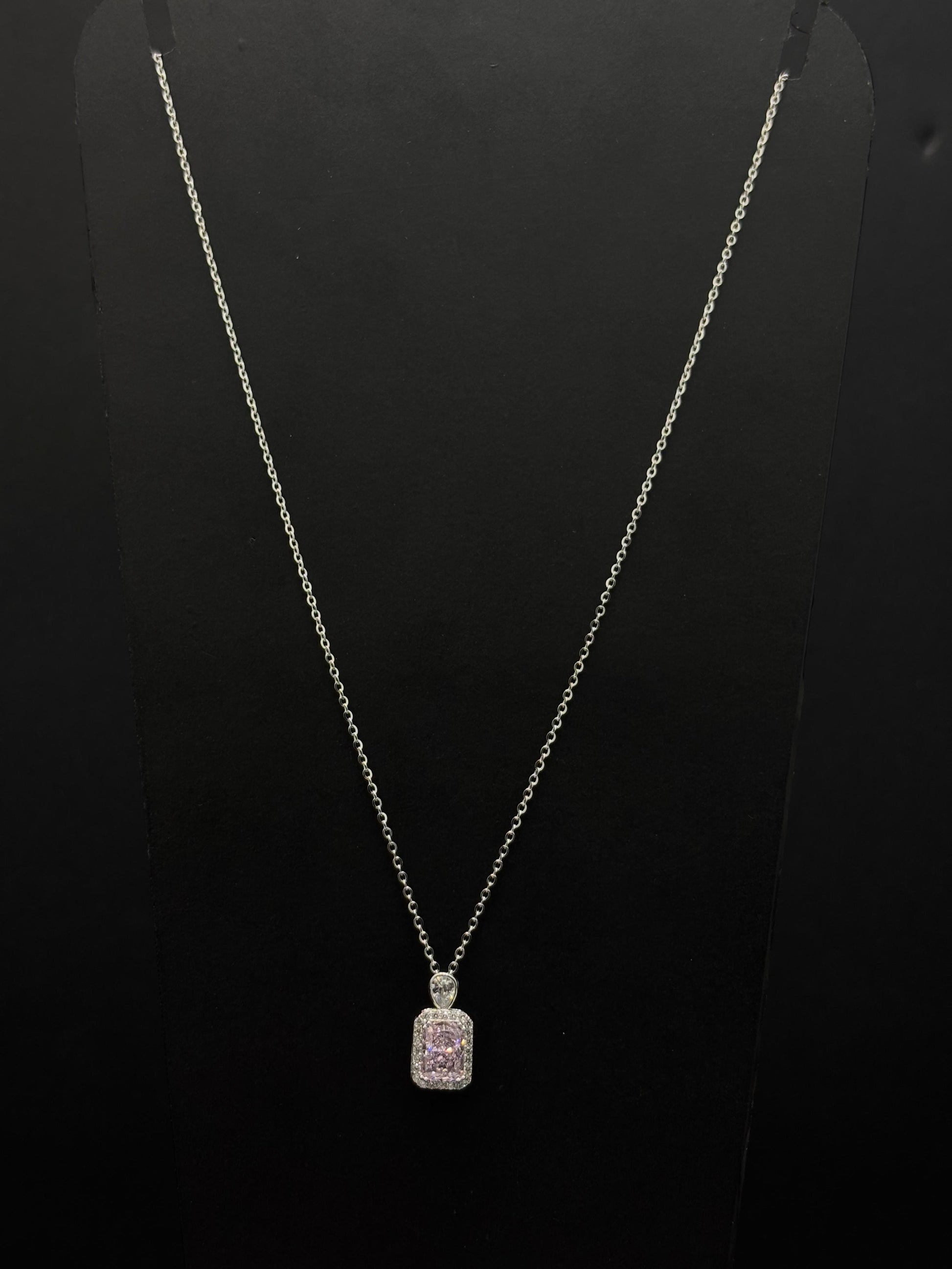 Command attention with The Rose Diamond Halo Pendant. This luxurious piece features a mesmerizing cushion-cut pink crystal that captures and refracts light brilliantly. The central stone is surrounded by a dazzling pavé crystal halo and suspended from a beautifully detailed crystal-set bail, ensuring maximum sparkle from every angle. It's a statement of classic elegance with a romantic, contemporary twist.