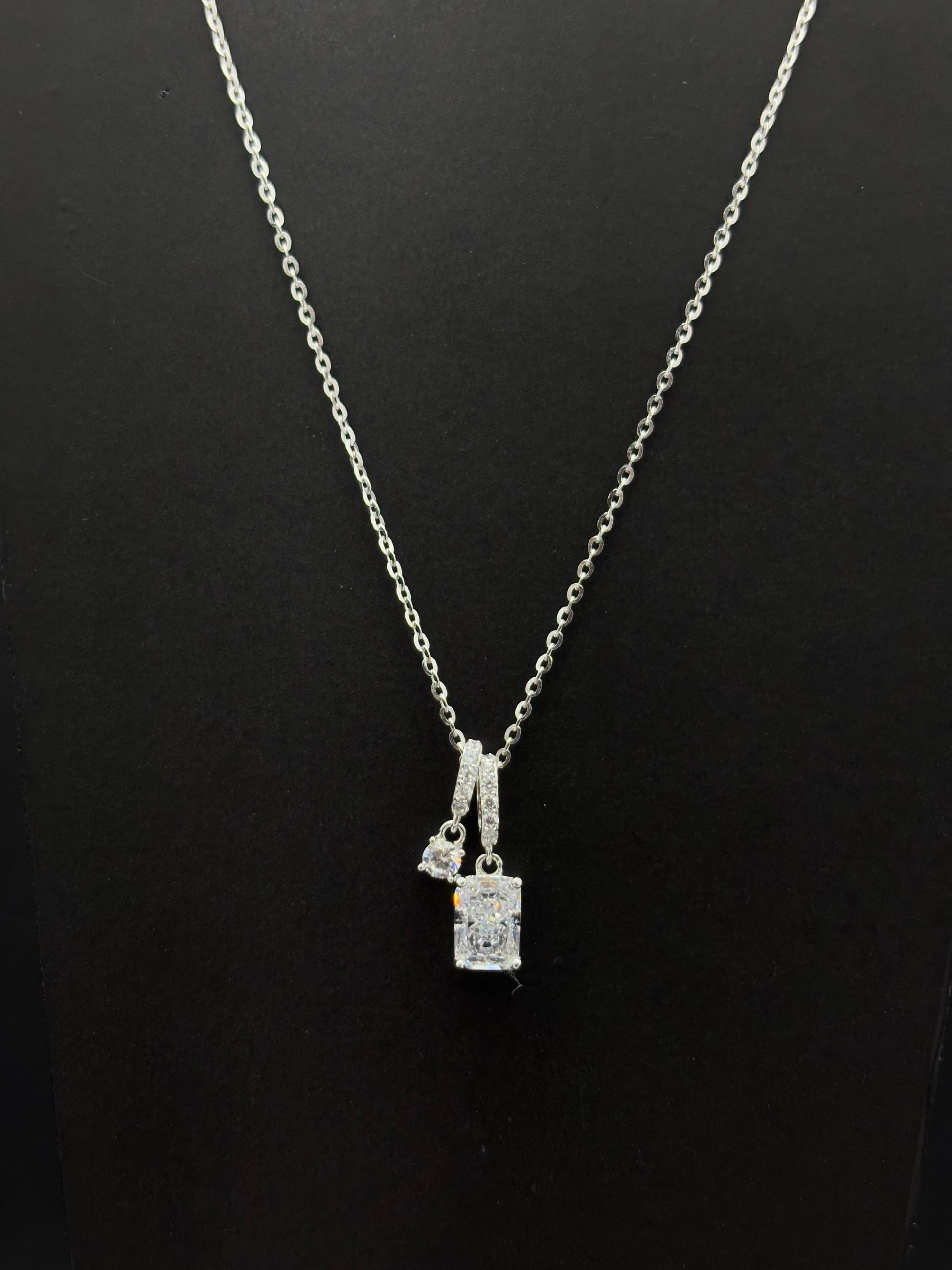 Command attention with The Royal Crest Necklace. This elegant piece features a striking V-shaped bail richly set with a graduated line of brilliant accent crystals. Suspended gracefully from the center is a magnificent pear-cut solitaire that catches the light with every turn. The design creates a luxurious, regal sparkle perfect for special occasions or an elevated evening look.