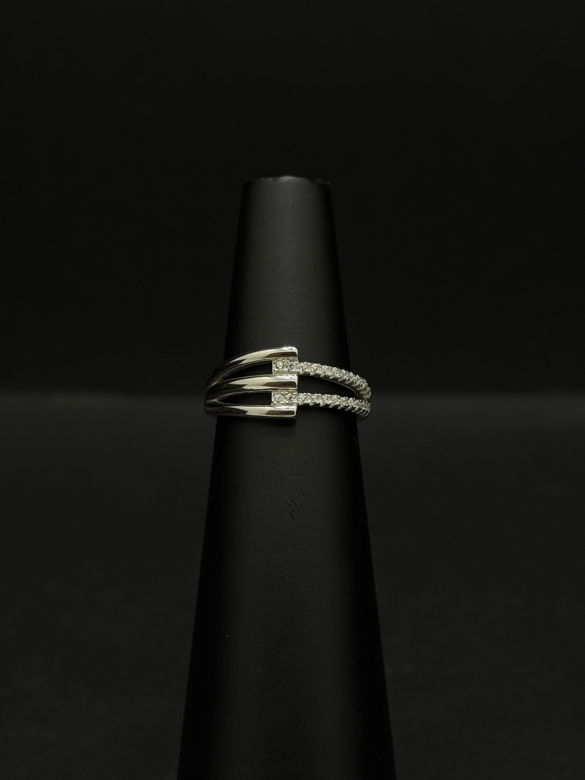 Sleek and distinctive, the Twin Pathway Silver Ring features a modern split design that symbolizes harmony and balance. One band is polished to a smooth shine, while the other is adorned with sparkling pavé-set stones, meeting elegantly at two square-cut accents in the center. Perfect for adding a touch of sophistication to everyday wear or evening looks, this ring blends minimalism with brilliance