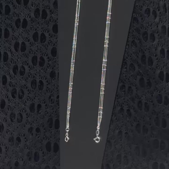 These elegant, long silver-toned chains offer exceptional versatility, perfect for enhancing various jewelry pieces or creating unique styling options. Each chain features a delicate yet sturdy design with a combination of fine links and evenly spaced small, polished beads, adding subtle texture and shine. Equipped with secure clasp closures at both ends, they can function as adjustable necklace extenders, bracelet enhancers, or even standalone body chains, draped elegantly across the torso or back. Their minimalist design and brilliant silver tone make them an ideal complement to a wide range of outfits, from casual to formal, allowing for endless creative styling possibilities.